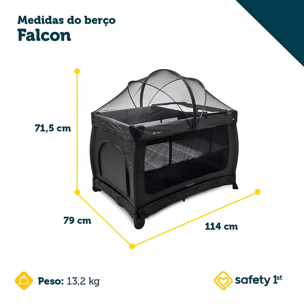 O Falcon é um berço portátil feito para quem quer praticidade desde o primeiro dia. Com capacidade para 20kg — a maior suportada no mercado —, ele é o maior da categoria e conta com duas alturas para acompanhar as diferentes fases do crescimento do bebê e facilitar o cuidado.